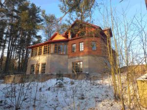 В 34 км от съезда с ЗСД, пос. Чернявское (Ольшаники), коттедж 520 кв.м, 3 этажа: 1-й - цокольный из монолитного бетона, 2-й и 3-й из красного кирпича. Фундамент плита, перекрытия бетон, кровля гибкая черепица (кровля утеплена). Без внутренней отделки.