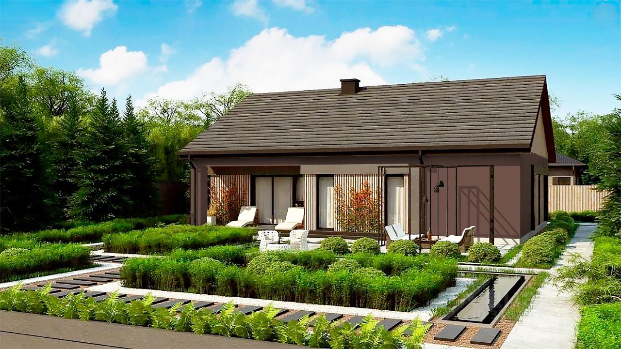 Одноэтажный дом на второй улице в коттеджном посёлке Альбион.