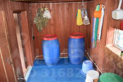 На участке находится металлический гараж, контейнер для хранения, дровник, колодец, при этом есть летний водопровод от садоводства, небольшой яблоневый и сливовый сад, грядки для посадок, работающая банька с горячей печкой, бойлером и комнатой отдыха, подключено электричество. А также находится бетонный, ленточный, с глубоким залеганием фундамент, можно смело строиться. Выдержит любую нагрузку.