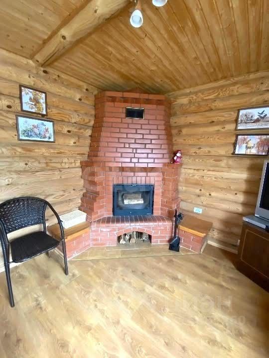 Дом построен из оцилиндрованного бревна, что обеспечивает отличную теплоизоляцию и уют в любое время года. Внутри уже проведены все коммуникации: вода из колодца, канализация — септик, а электричество мощностью 15 кВт. Отопление осуществляется как от камина, так и с помощью навесных электрических радиаторов, что делает возможным круглогодичное проживание.