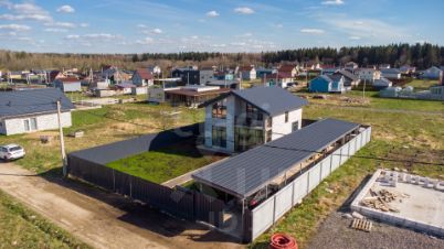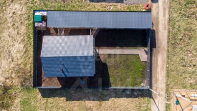 На участке площадью 6 соток правильной формы, выровненный и сухой, выполнен дренаж по всему периметру. Здесь есть большой навес на 4 автомобиля (монолитная плита 400) и уютная беседка для летнего отдыха. Въезд на участок оборудован выдвижными воротами и системой видеонаблюдения.