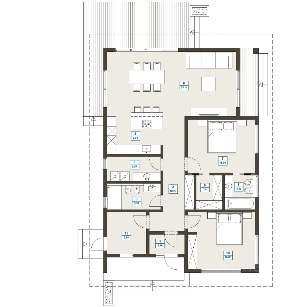Возможно внести корректировки в проект. Например, увеличить или уменьшить количество спален или увеличить размер террасы, мделать дозаказ внутренней отделки White Box.