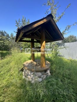 По всему участку забор с воротами, на территории: ель, яблоня, груша, слива, крыжовник, смородина, шиповник, дуб, березы.