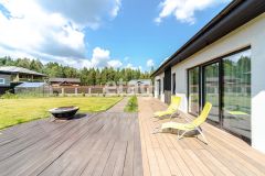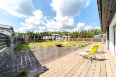 Просторный участок 8 соток позволит реализовать любые идеи. Перед домом оборудована терраса, которая идеальна подойдет для отдыха всей семьей и гостей, есть зона барбекю. В теплице, с установленными УФ-лампами, можно выращивать свежую зелень и овощи. Также на участке расположена детская площадка с резиновым покрытием — для игр с детьми и занятий спортом на открытом воздухе.