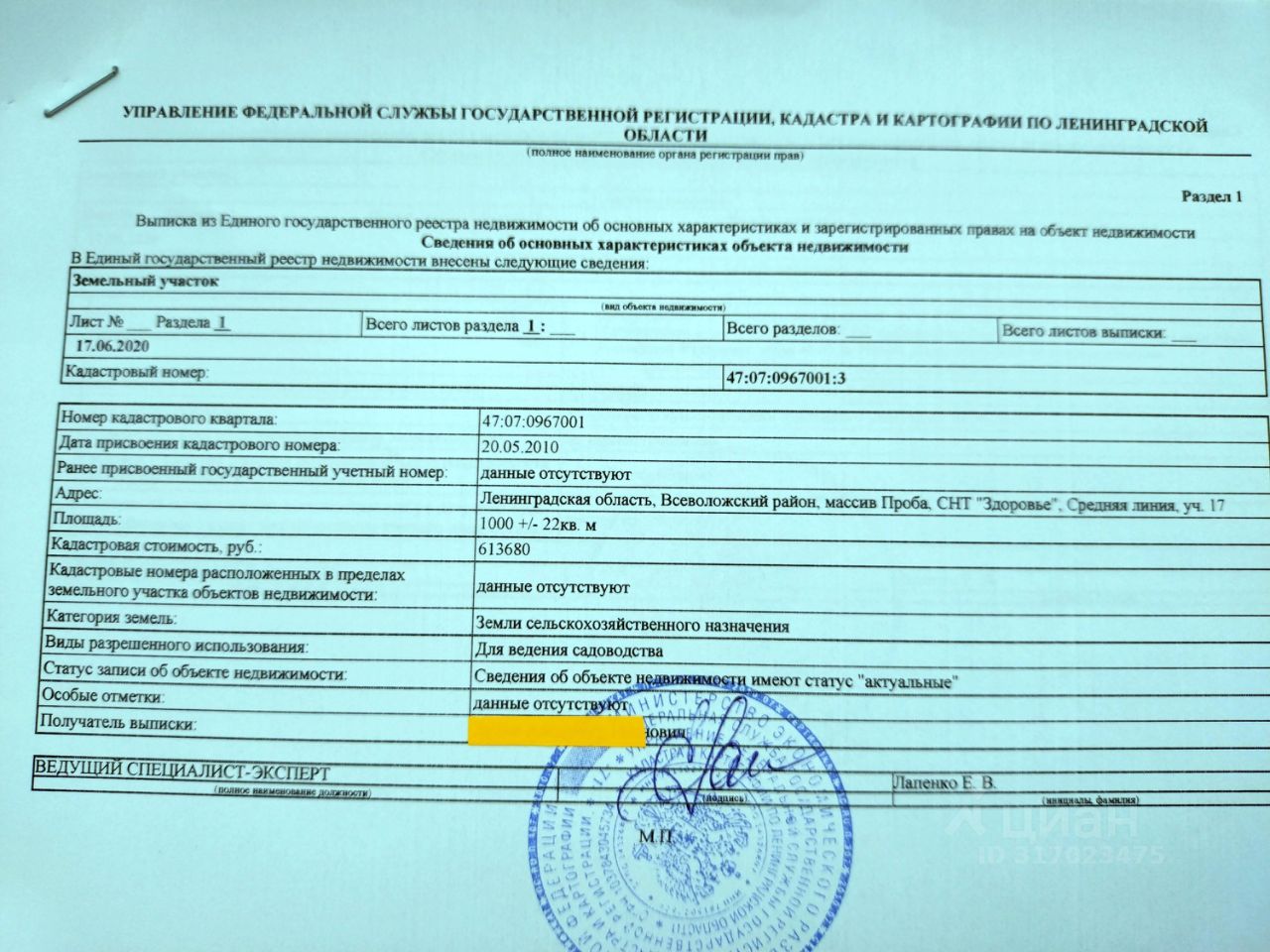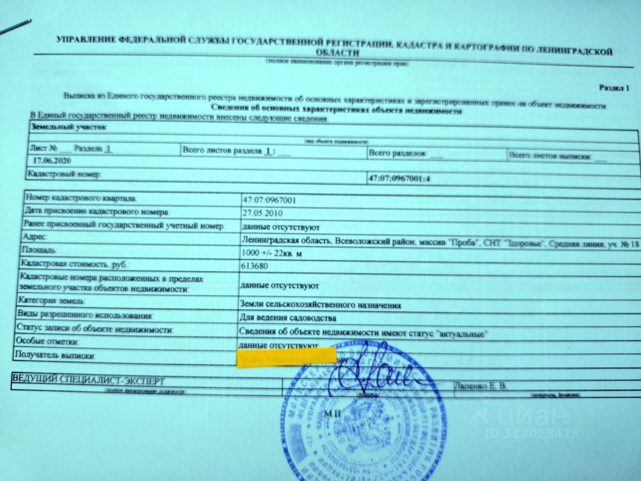 Кадастровый номер участка 47:07:0967001:*** указал продавец