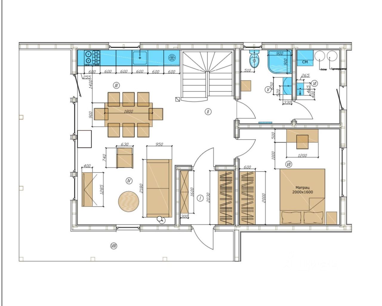 * Просторная кухня-гостиная с дровяным чугунным камином