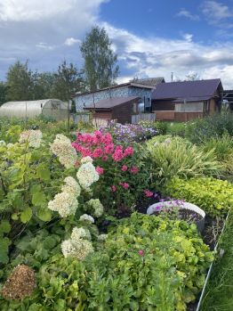 На участке настоящая русская баня из кирпича и бревен с верандой и комнатой отдыха(парилка и мойка отдельно). Хоз постройки, три теплицы, большой запас дров, плодово-ягодные деревья и кусты, грядки. Участок высокий, сухой, ухоженный.