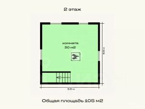 Второй этаж представляет собой единое пространство площадью 30м2 с печью посередине. Черновые полы из доски, стены без отделки, на окнах двухкамерные стеклопакеты.