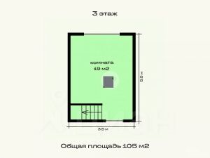 Третий этаж мансардный площадью 19м2, отделан вагонкой, на пол уложена доска, установлены двери на лестницу и стеклопакет.