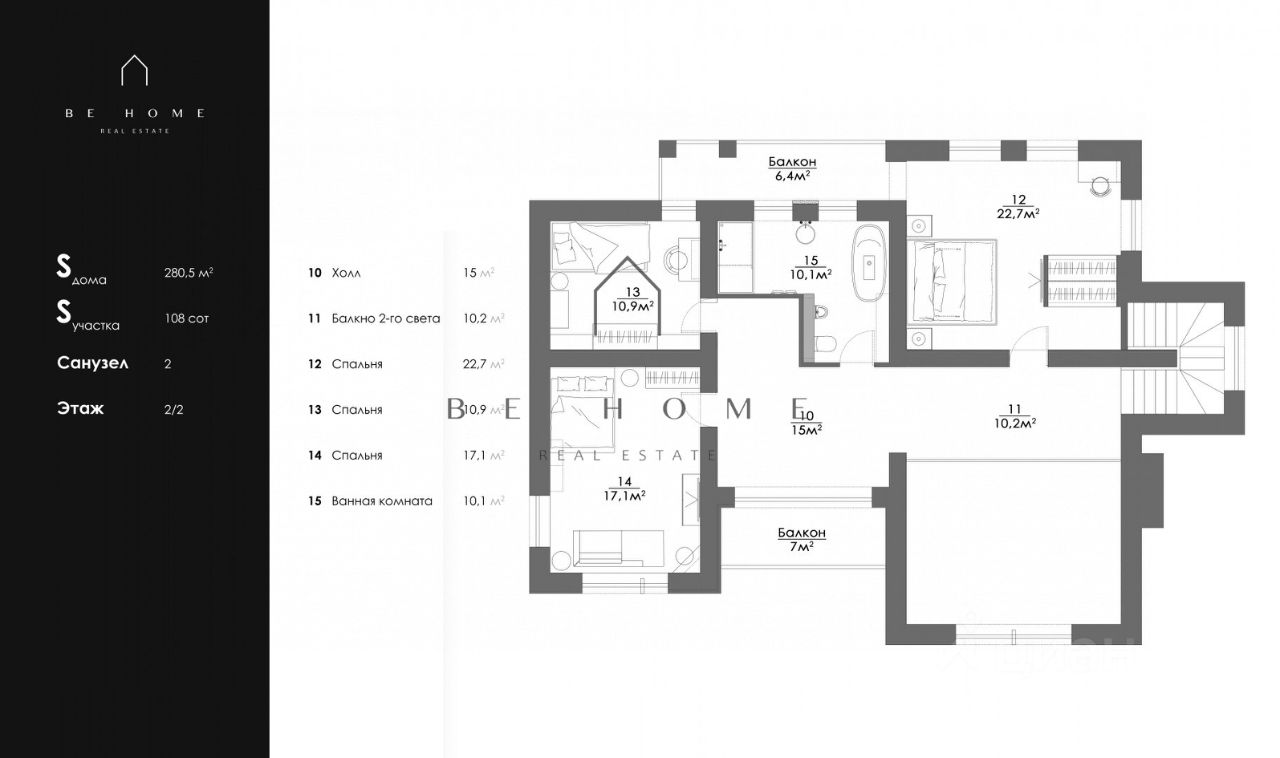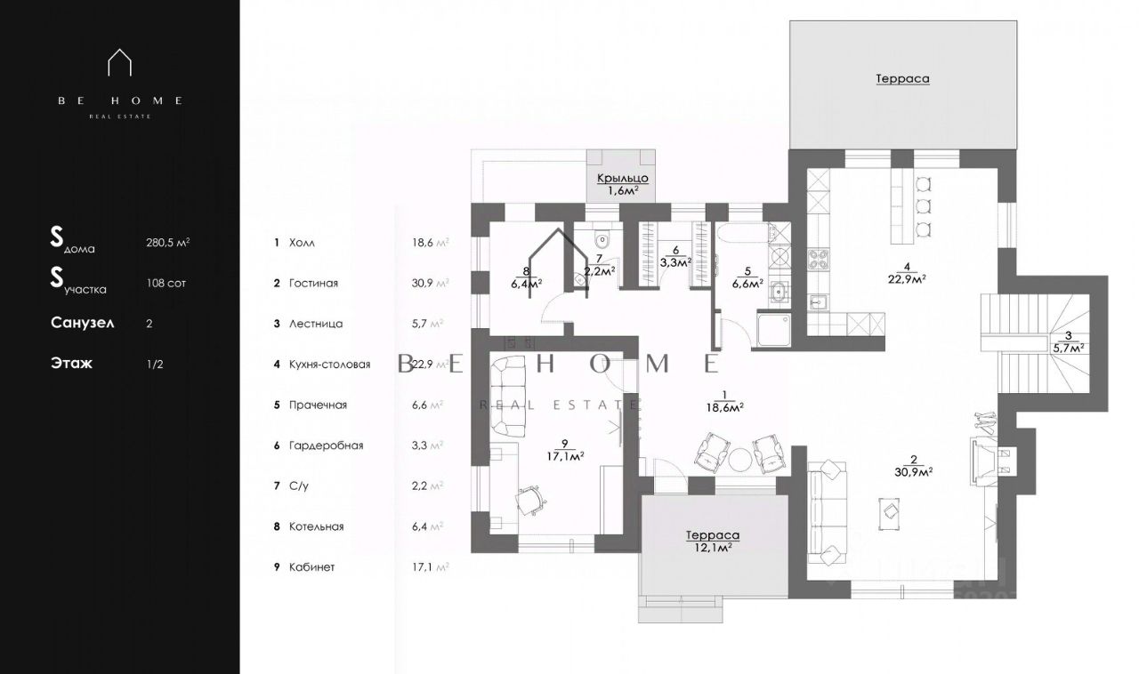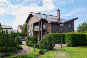 Основной дом: Построенный в 2018 году, дом прошел комплексную отделку по индивидуальному дизайн-проекту. В доме прекрасно продуманная планировка. На первом уровне просторный холл, уютная кухня, объединенная с гостиной, отдельный кабинет (или гостевая спальня), гостевой туалет, душевая/прачечная, гардеробная и помещение котельной. Пространства и воздуха добавляет второй свет в гостиной, а из кухни предусмотрен выход на большую террасу. Второй уровень включает в себя три спальни, два балкона и совмещенную ванную комнату. На чердаке (высокий мансардный третий этаж) большая детская игровая зона с шариками и местом для хранения вещей другого сезона. Высоты потолков от 2,75 до 10,3 м. Дом построен из газобетона, фундамент - ЖБ плита, фасад снаружи обшит клинкерным кирпичом, цоколь натуральный камень.