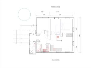 Состав помещений: 1 этаж крытая терраса, холл, веранда, кухня, с\узел, столовая-кухня (с камином фирмы Romotop и встроенной мебелью кухни), спальная на 1 чел и спальная на 2 чел (встроенный гардеробный шкаф). Заканчивается работа по пристройке (тамбур и помещение для душевой, стиральной и места отопит оборудования) и проводка зимнего водопровода