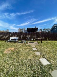 На участке туи и газон. (если Вы садовод - будет место для реализации Ваших планов, мы же приезжали гулять и наслаждаться общением с близкими и природой).