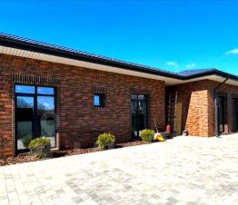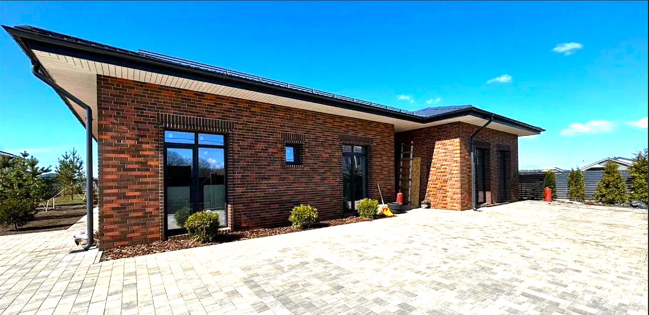 Кирпичные стены из красного керамического кирпича с облицовкой фасадным клинкерным кирпичом (толщина стен 510 мм), что дает уверенности в том, что дом очень теплый и построен из экологически чистых материалов (красный кирпич- это экологически чистый материал - обожженная глина).