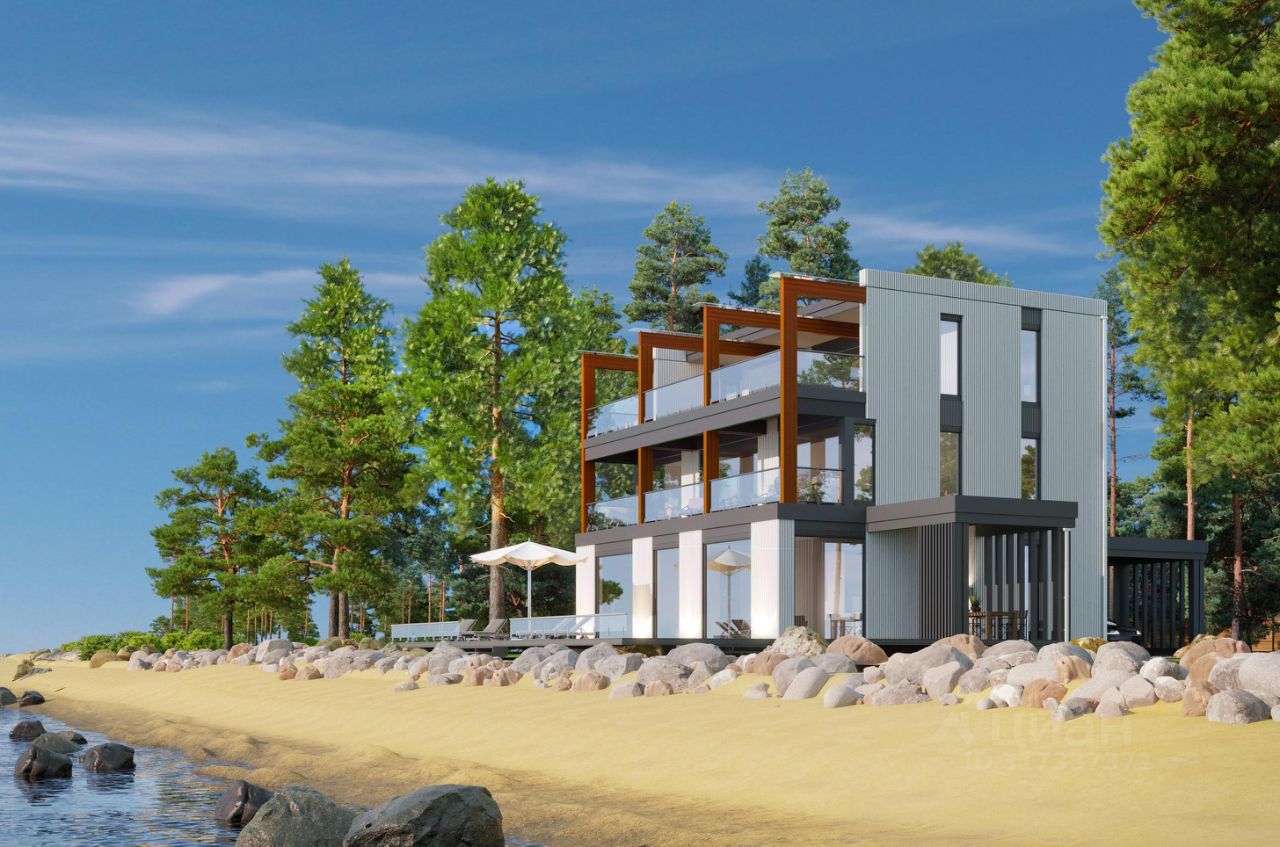 Продается эксклюзивный трехэтажный дом площадью 400 кв. м на первой линии Финского залива в клубном поселке Золотые пески.