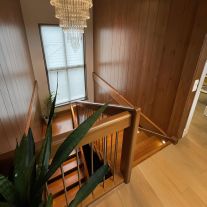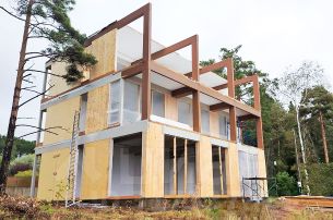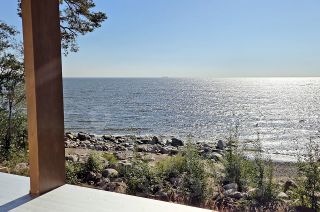 Натуральное дерево стен и перекрытий дополнено монолитным фундаментом и бетонной кровлей, обеспечивающей долговечность. Панорамные окна в пол наполняют дом светом и открывают виды на залив.