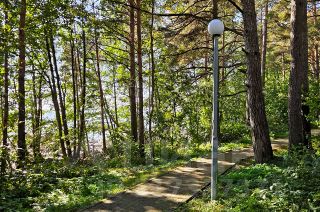 Участок площадью 22,5 соток расположен на краю поселка, где ровный рельеф плавно переходит в пологий спуск к воде. Предусмотрен фарватер для швартовки катера, парковка с навесом на два автомобиля и пространство для ландшафтного дизайна.