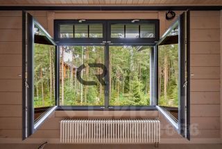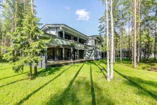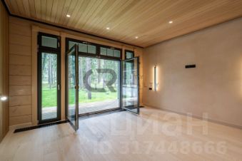 Ландшафт передает первозданную красоту, на участке есть собственный черничник, сохранены многолетние сосны, вид на которые открывается из панорамных окон гостиной. Есть возможность заказать мебель по дизайн проекту.