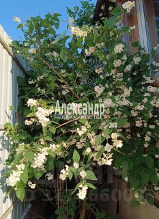 Земельный участок правильной формы, сухой. На участке деревья хвойные; плодовые - вишня, слива, яблоня; ягодные кусты - малина, смородина, крыжовник; кусты сирени, жасмина, дикий виноград; много цветов - хоста, пионы, ирисы, нарциссы и другие.