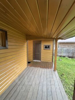 В хозблоке расположен туалет, душевая кабина и небольшая сауна.