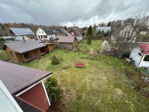На участке расположен дом и хоз.блок. В доме два этажа+ цокольный этаж. На первом этаже расположена кухня-гостиная и спальня, на втором этаже-две спальни.