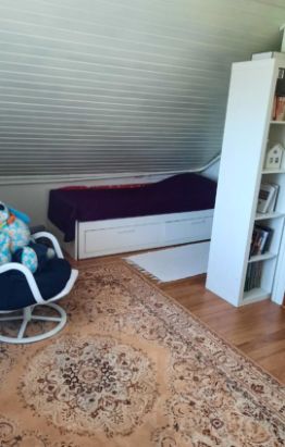 На третьем этаже - жилая комната с балконом и комната с выходом в зал, наподобе балкона в доме. Там находится библиотека.