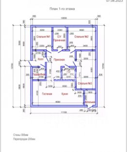 Выполнен из газобетонных блоков 200 мм утепления, стены-300мм, перегородки 200мм