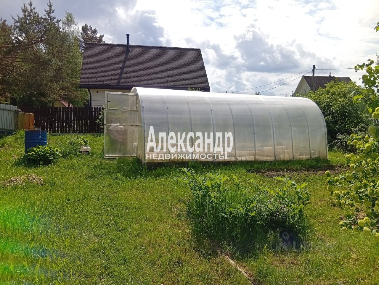 На участке скважина с питьевой водой, теплица, грядки, кусты малины, смородины, крыжовника.