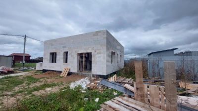 Стены из газобетона с утеплением минеральной ватой и фасадной штукатуркой. Дом с черновой отделкой.