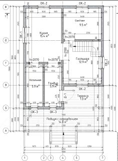 Высота от лаг пола до потолочных балок на 1м этаже 2,6 м ,на втором 2,4 м.