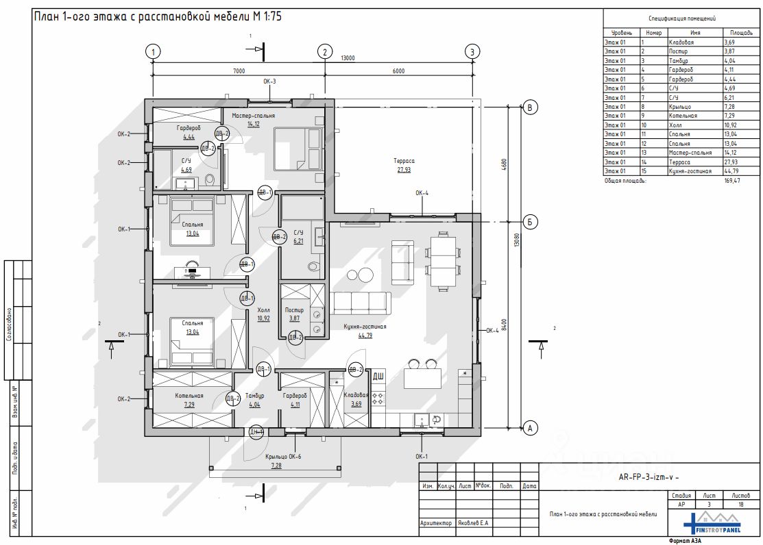 Жилая площадь дома 147м2, площадь террасы 30м2, крыльцо 10м2.