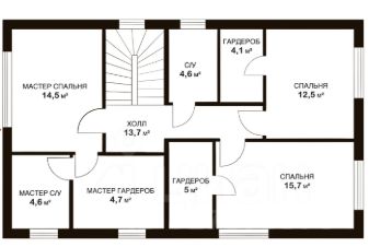 Мастер спальня 14.51 м2 + с/у 4.64 м2 + Гардероб 4.69 м2