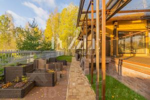 Участок, площадью 21 сотка, расположен на границе коттеджного поселка - у вас будет великолепный вид на лес! Участок полностью благоустроен. Оформленные ландшафтные и цветочные композиции придают участку легкость, объем и перспективу развития. На участке выполнено мощение под парковочной зоной, установлен навес на 2 а/м, сделано террасирование (участок условно разбит на переднюю и заднюю часть).