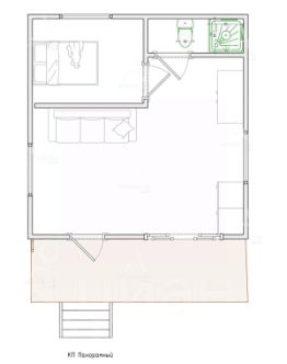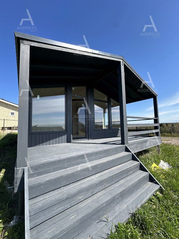 Дом площадью 56 кв.м., имеет просторную кухню-гостиную, спальню, санузел, террасу, панорамное остекление. В доме выполнен основной ремонт.