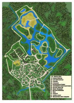 Все дома и заборы выполнены в едином стиле , бережно сохранен природный ландшафт, изюминкой поселка является общая зона отдыха с родниковыми прудами для рыбалки и купания , есть несколько спортивных и детских площадок .