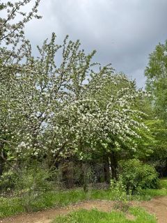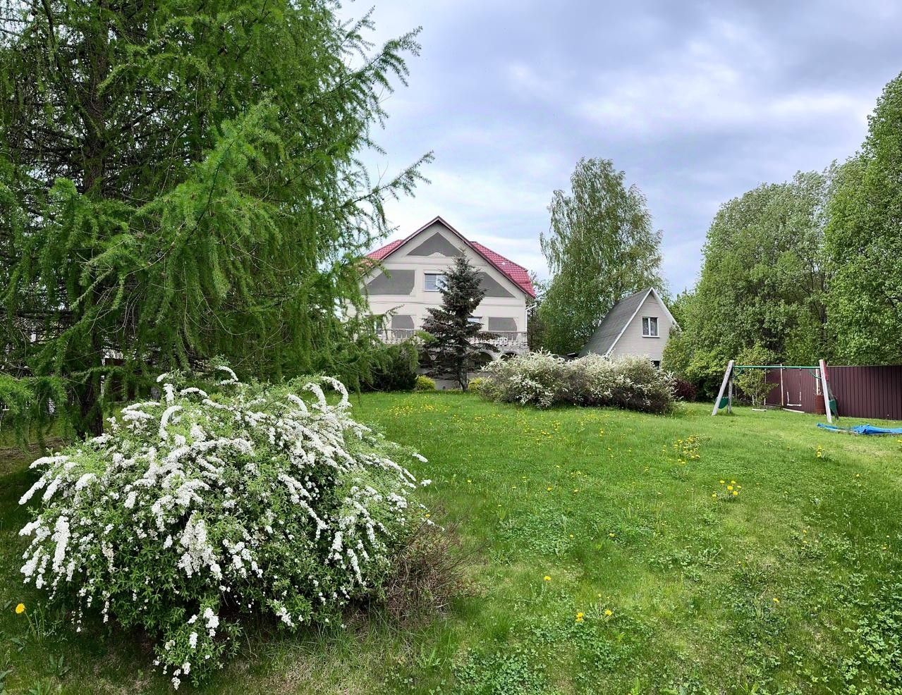 Сделан ландшафтный дизайн, высажены редкие растения: лиственница, конические канадские ели, горная сосна, голубые ели. Сортовые розы, смородина, крыжовник, малина, калина, съедобная жимолость, яблони и груши. Плодоносящий виноград "Изабелла".