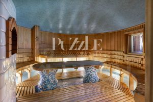 дом имеет сразу несколько особенностей: просторное помещение спортивного зала, уютная гостиная с камином, спальная комната, хамам(!), зимний сад с настоящей ручкой печью (!) и комфортная русская баня;
