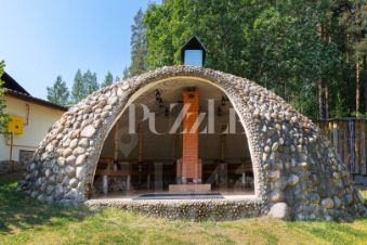 также на участке построено крытое патио, где можно прекрасно проводить время с гостями вокруг мангала;