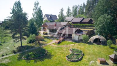 Общая площадь домовладения составляет порядка 1 Га на котором разместились: 4 полноценных деревянных дома, 2 великолепные бани, уютная беседка, собственный пруд, сад с плодовыми деревьями, патио, вспомогательные строения.