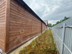 Участок 17 соток. На метр грунт вынут, положено 2 слоя геотекстиль-щебень-песок-геотекстиль-щебень-песок . Участок высокий. Участок квадратной формы. В нем чувствуется объем и свобода. Грамотно распланирован и зонирован. Весь участок огорожен забором (профлист).