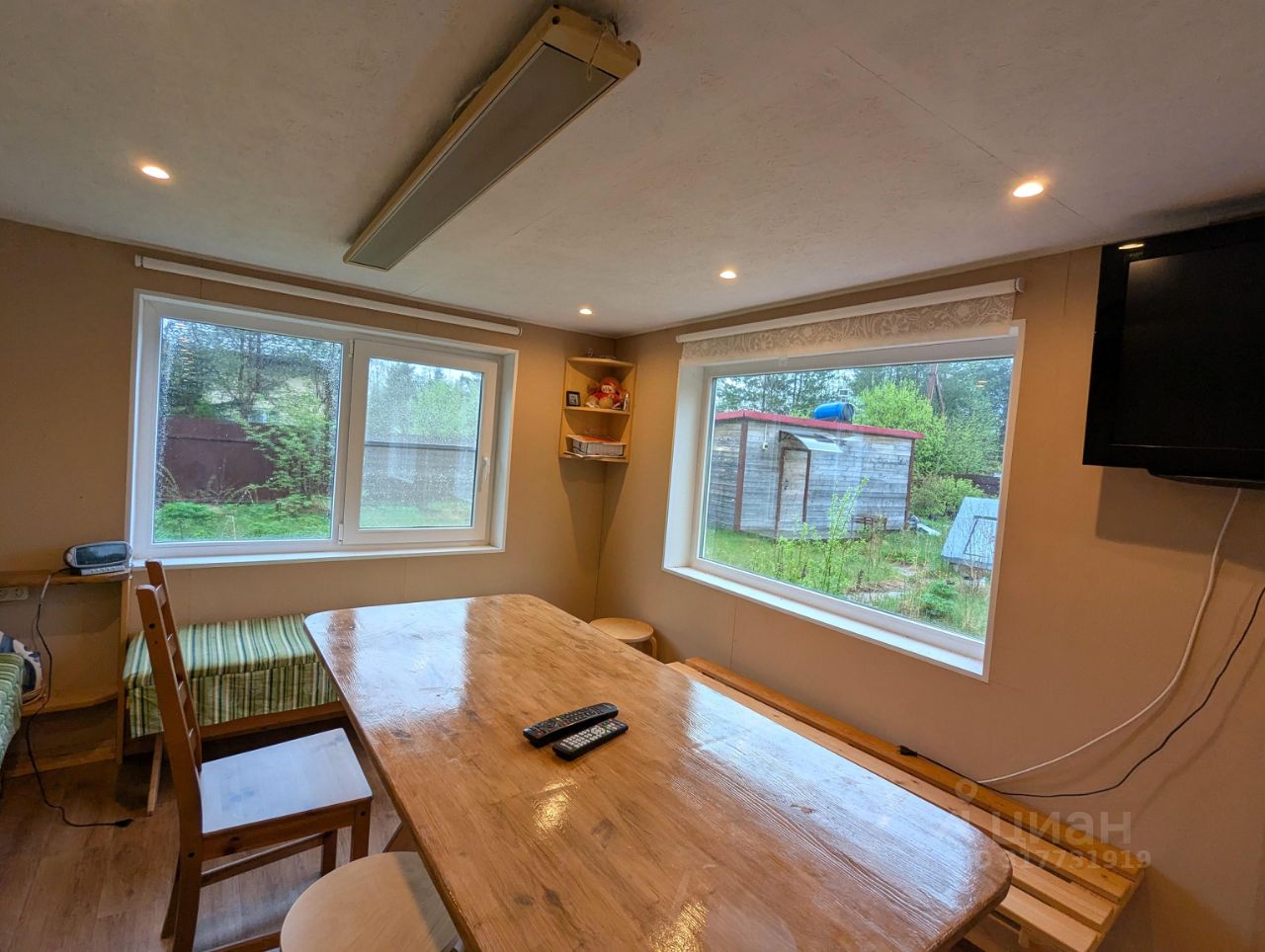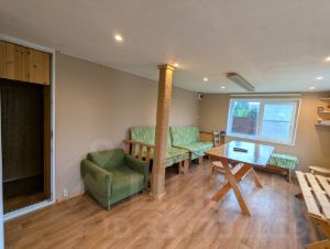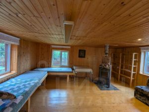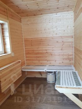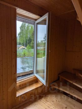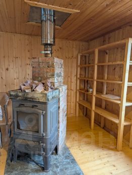 сруб 3*6 м из бревна сосны, на сваях. Толщина стен 38 см. Электричество, освещение. Обшита импрегнированным планкеном, утеплено со всех сторон 100 мм Rockwool. Стены и потолок обшиты вагонкой. Оборудована: