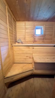1 этаж: большая жилая комната, баня, парилка, входная зона со столом