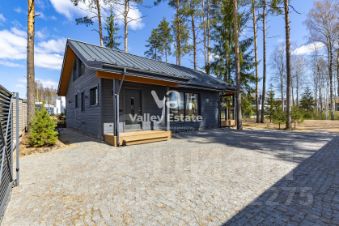 Участок отсыпан песком, сделано мощение. На участке растут сосны, есть место под застройку основного дома.