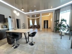 На первом этаже вас встретит просторный холл с гардеробной, уютная зона отдыха, современная кухня-гостиная и зимний сад с фонтаном, который создаст атмосферу уюта и спокойствия. Также на этом уровне расположены спальня, санузел и техническое помещение, что делает дом функциональным и удобным для проживания.