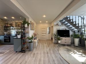 В доме заменены все коммуникации, обои, полы на первом этаже, кухонный гарнитур и техника после застройщика. Установлено жидкое стекло (мягкие окна) на террасе на первом этаже. Куплен кондиционер, остается только установить в выбранное вами помещение. Теплый пол на первом этаже и в двух санузлах. Установлена дополнительная охранная система. Электрические ворота.
