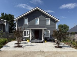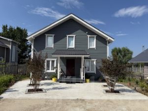 Фундамент - сваи+обвязка, стены - каркасные, крыша покрыта черепицей. Утеплитель - Урса: стены 150 мм, пол и крыша 200 мм. Окна - пластиковые стеклопакеты. Отопление - электро-котел. Вода скважина в поселке. Канализация - септик. Электричество 15 кВт.