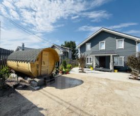 Это четырехкомнатный дом общей площадью 212.3 м2 с двумя санузлами, двумя террасами, гардеробной, прихожей и техническим помещением. На первом этаже комната 10 м2, кухня-гостиная 47 м2 с выходом на террасу 28 м2. На втором этаже гардеробная, в одной из комнат установлена система хранения, а из двух оставшихся комнат выход на террасу 28 м2, с которой открываются невероятные закаты и рассветы и можно увидеть всеми любимую Лахта центр!