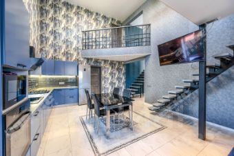балкон на улицу, а также стильный внутренний балкон над кухней-гостиной.