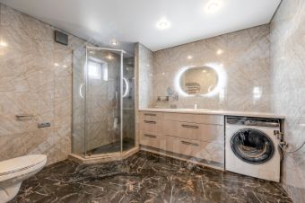 В доме имеются: встроенный гараж на 2 места с мастерской, котельная с грамотно сделанной разводкой, прихожая, кухня-гостиная, 2 ванные комнаты, две лестницы на 2 этаж, 5 комнат, кабинет, гардеробная,