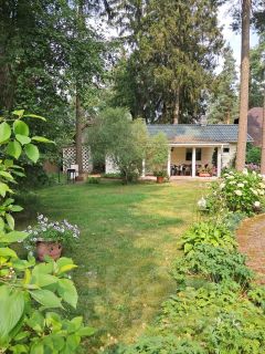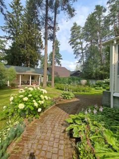- участок красивый и ухоженный, огорожен, растут сосны, высажены цветы и садовые растения