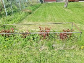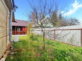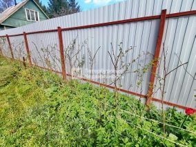 Участок идеально ровный и сухой, разработан и ухожен. Грядки с ремонтантной земляникой, малинник, яблоня, слива, вишня, кусты боярышника, чёрной смородины и крыжовника, лимонник, пионы и другие цветы. Огорожен металлическим забором справа и от улицы.